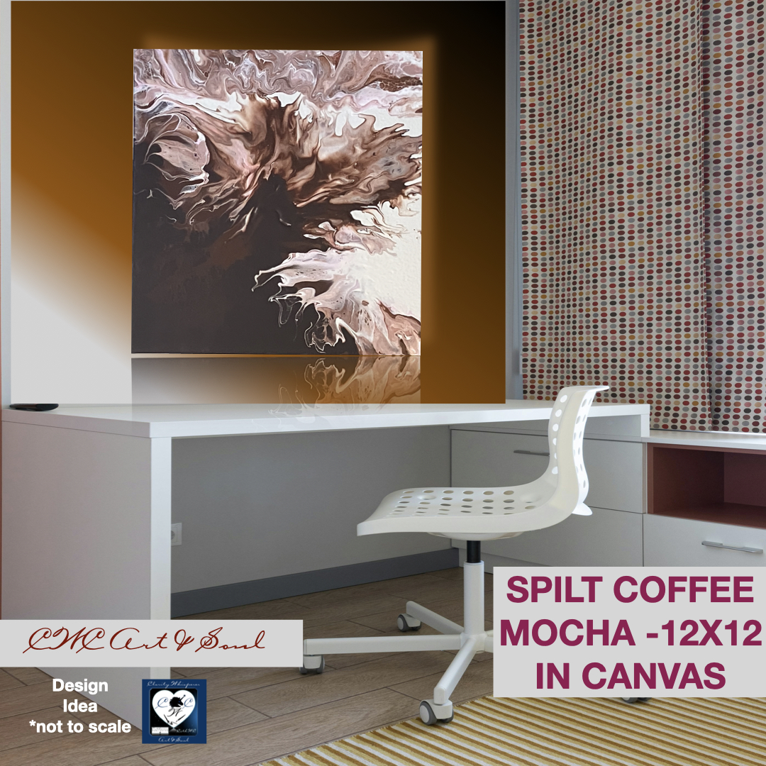 Acrylic Paint-on Canvas -mocha chocolate shades spilt across the canvas -soft energy shifts